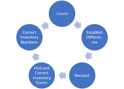 Most of the time, people think that instead of having a yearly total physical count, you just break it down into smaller periodic counts. They do the counting and report the differences to Finance. They refer to it as a cycle count.